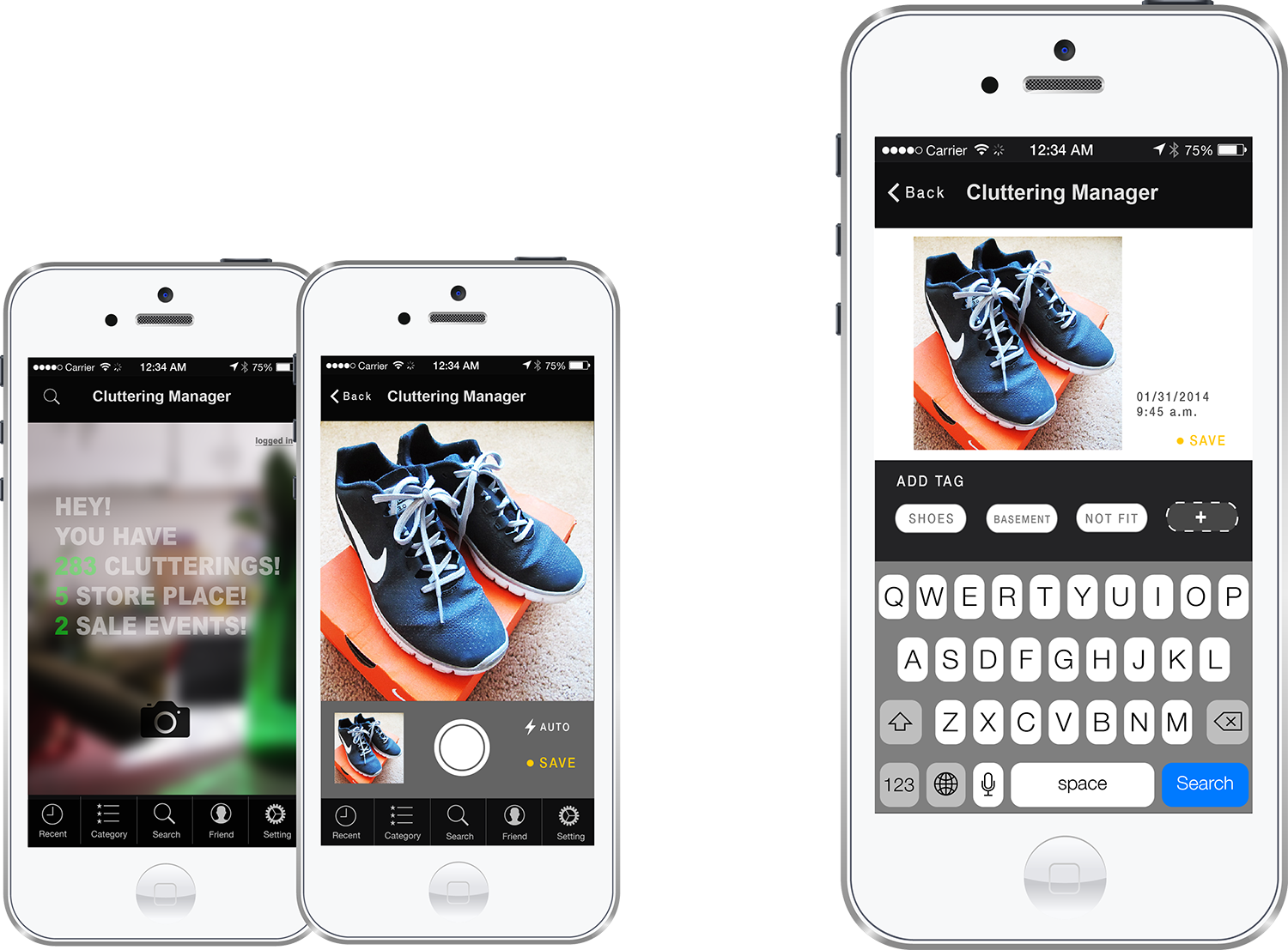 Cluttering Manager is an app assist people with their cluttering and hoarding. The function of tag, search, categorize and connect to friend will solve annoying problem when people are dealing with idle items.