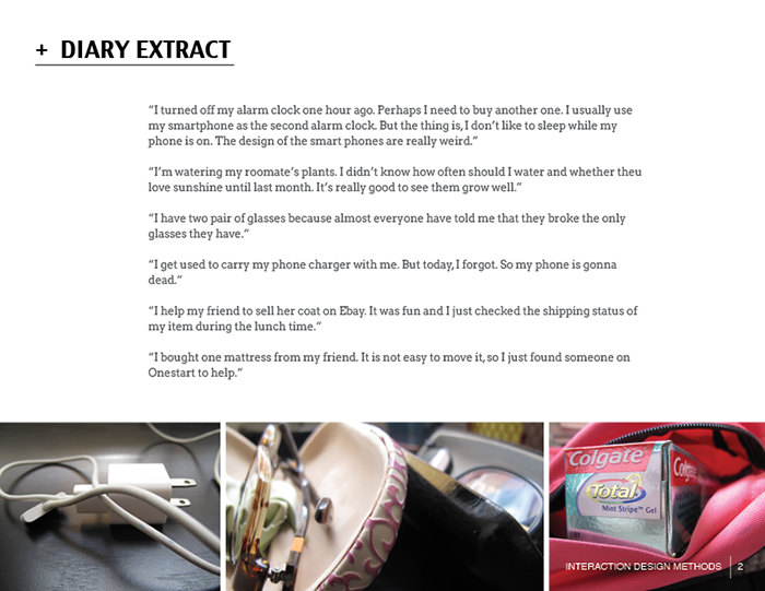 - Define problem space and clarify the purpose of the diary.