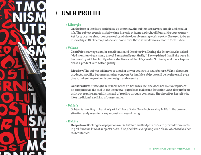 - Write up findings including user profile such as lifestyle, value, belief, and habits.