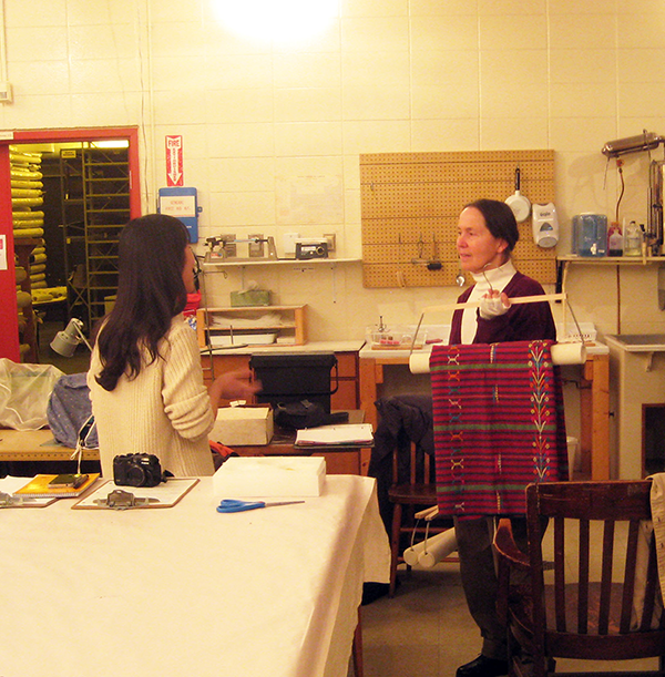 The museum collects and stores many types of textiles, of varying ages from varying locations. Judy designed the “Hanging Roll” about seven years ago for the storage of irregular textiles that are “in between an article of clothing and a flat textile”. She found when a textile is of an irregular form, traditional storage methods do not suit (i.e. folded into boxes, hung on padded hangers, rolled up flat textile).