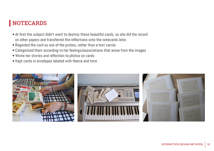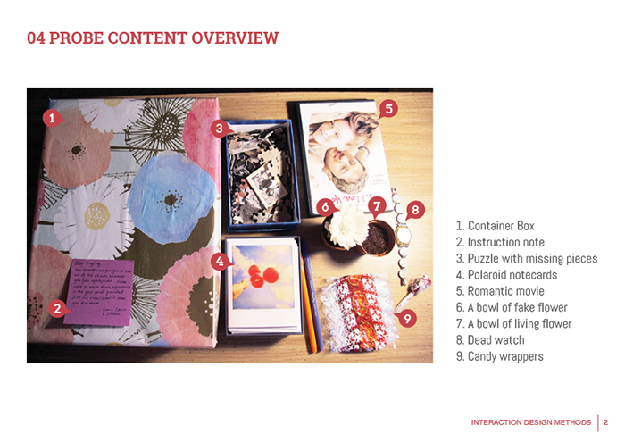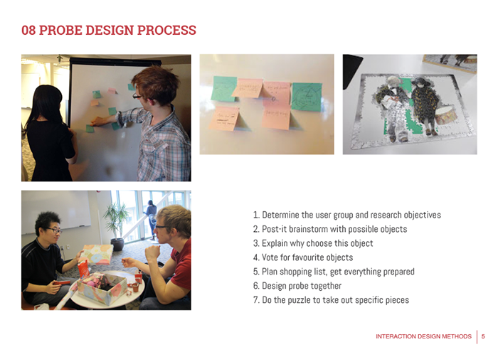 It is the method that aims to elicit responses from subjects by selecting artifacts and let people interact with them. It serves as a means of gathering inspirational data about people’s lives, values and thoughts.