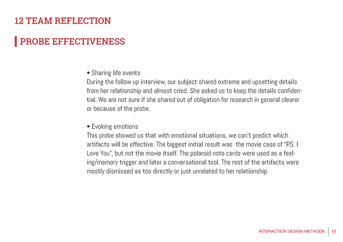 - Probes are bad for getting quantified data, or otherwise clear/actionable results. The low number of subjects and peculiarity of individual interpretations makes the insights difficult to generalize with confidence.