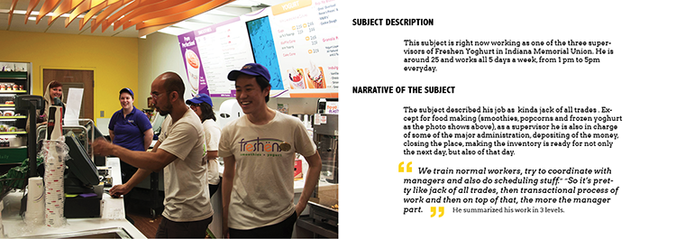 - Photos will offer much detailed information beyond words, such as their dress, tools they use and working environment, all of these are useful for researches to go deep, make relation to their job and explore insights.